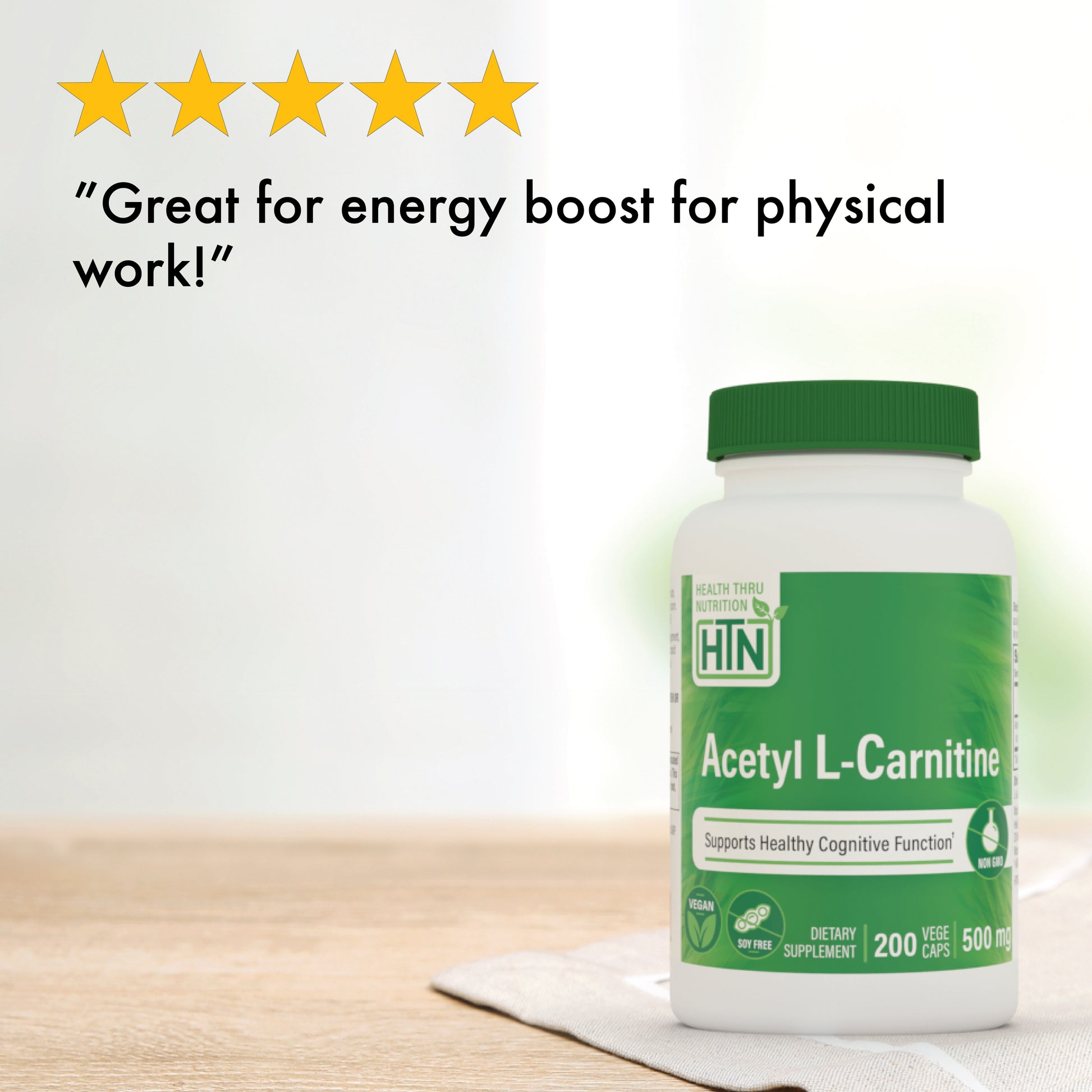 Health Thru Nutrition’s Acetyl L-Carnitine is a dietary supplement that provides 500 mg of Acetyl L-Carnitine per serving. Acetyl L-Carnitine is a naturally occurring amino acid derivative involved in the normal transport of fatty acids within cells, where they are utilized as a source of energy.