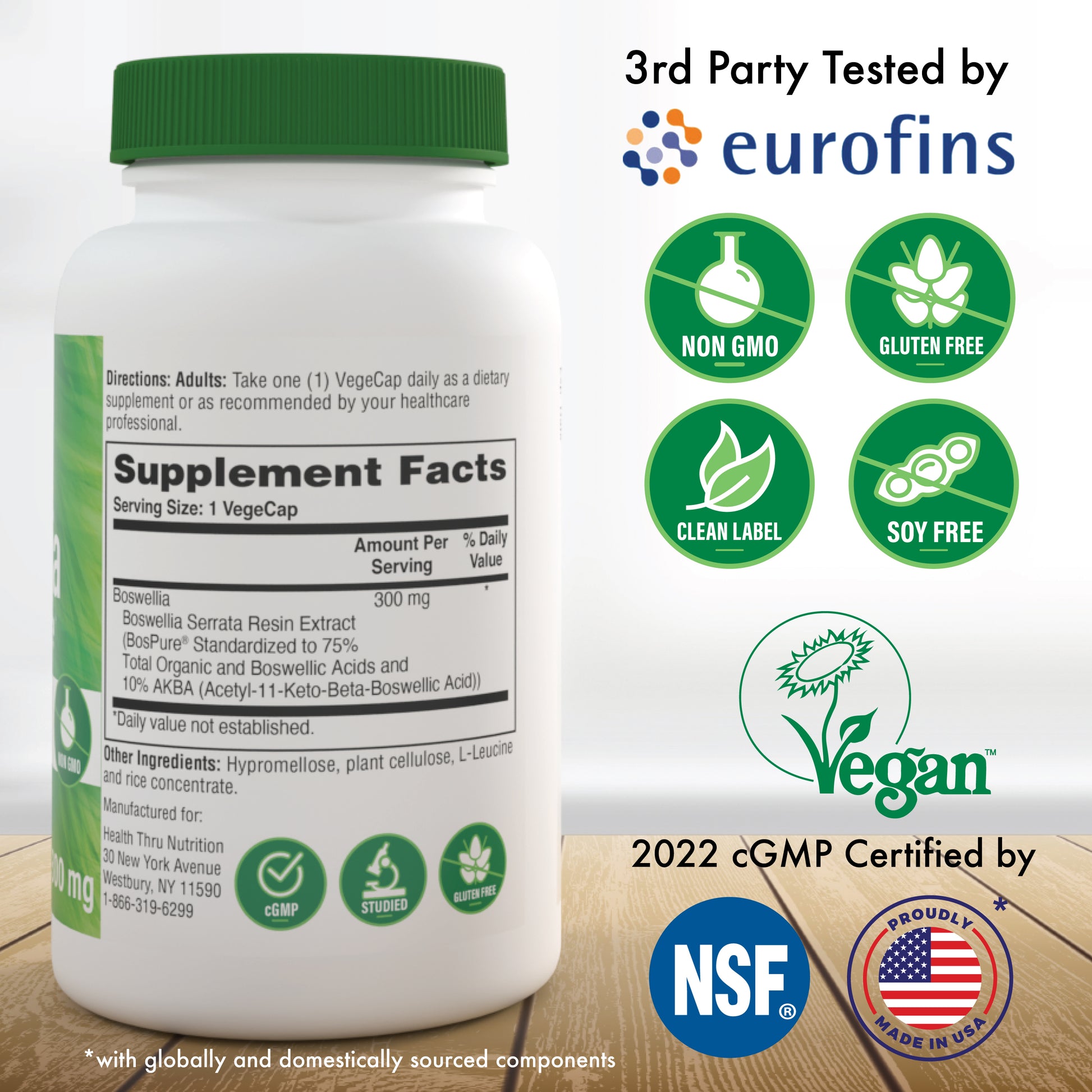 Health Thru Nutrition’s Boswellia 300 mg vegecaps provide a standardized extract of Boswellia serrata, featuring BosPure® AKBAMAX, a high-quality boswellia extract. This plant-derived ingredient has been traditionally used in wellness practices for centuries.