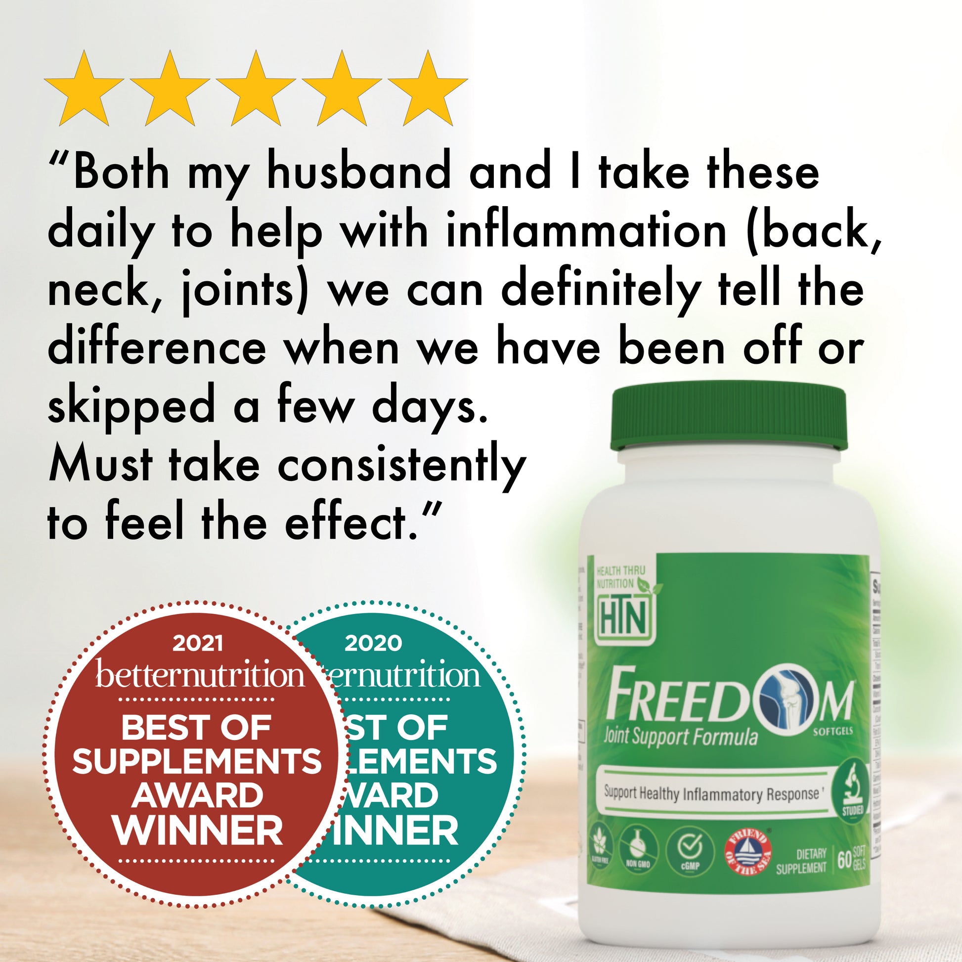 Freedom Softgels® has been recognized with multiple Best of Supplements Awards by Better Nutrition, highlighting its commitment to quality and innovation. Additionally, this formula has been the subject of clinical research conducted at UCLA Harbor Medical, examining its role in supporting overall wellness.