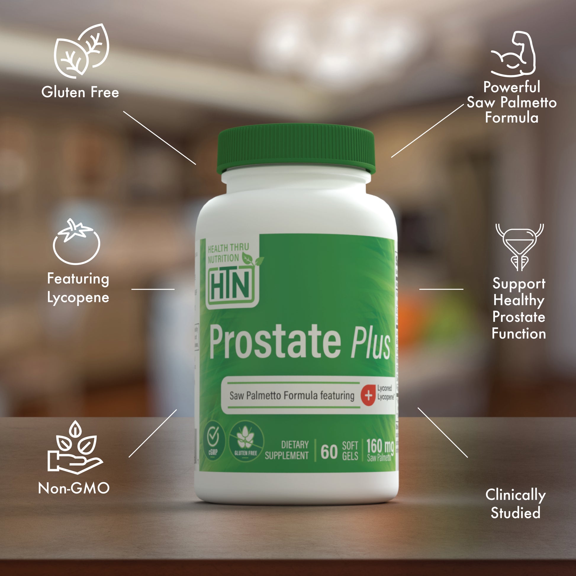 Health Thru Nutrition Prostate Plus Formula is a dietary supplement formulated with a blend of natural ingredients, including saw palmetto, lycopene, beta-sitosterol, campesterols, stigmasterols, pumpkin seed oil, vitamin E, and zinc. This comprehensive blend is designed to support your prostate health and overall wellness.