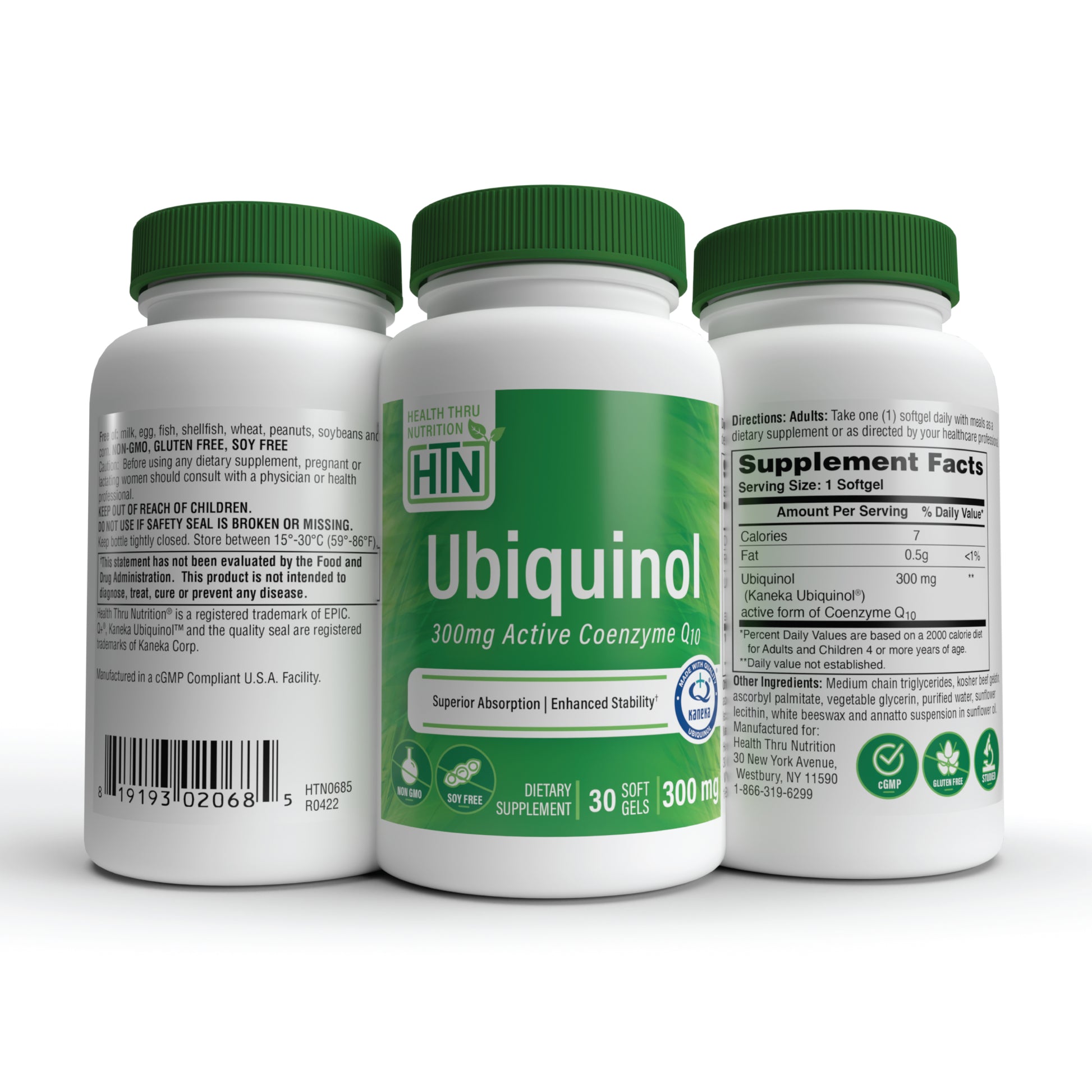 Health Thru Nutrition’s Ubiquinol is formulated with Kaneka® Ubiquinol, a high-quality, stabilized CoQ10 ingredient. This Non-GMO, gluten-free, and soy-free supplement is manufactured in the USA under strict cGMP standards to ensure quality and consistency.